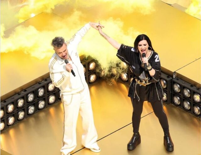 La italiana se presentó junto a Robbie, el compositor de «Desire», ofreciendo todo un espectáculo que, inevitablemente, sumó mayor emoción y expectativa ante el enfrentamiento de los dos equipos europeos.