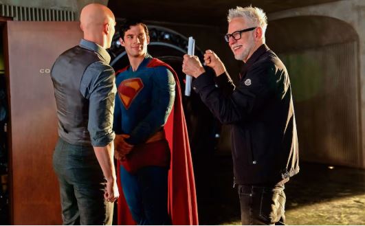En rodaje Nicholas Hoult, quien da vida a Lex Luthor, y David Corenswet con el director, James Gunn. Foto: Warner Bros