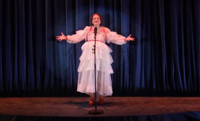 “Muchísima gracias, que lindo es estar aquí, que emocionante, se sienten muchas mariposas y libélulas y más aquí en la barriga, estoy cocinando un pastelito de amor y de vida, me gusta mucho que la canción es compañera, es maestra, es amiga, es regañona, es amparo, la siguiente canción la compuse en un momento partidito, roro, con la intención de recordarle a mi alma que la vida se trata de vivir en libertad y en felicidad y que bonita la naturaleza que nos acompaña con sus mensajes, con sus aves espirituales como el pajarito colibrí», dijo antes de interpretar “Pajarito colibrí”, seguida por “María la Curandera”.